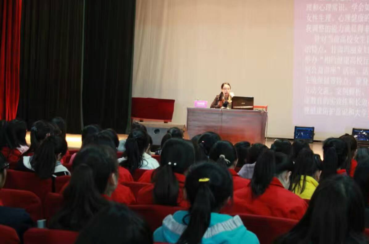 11月14日下午,“健康新女性 美丽大学生”2016—2017年度甘肃高校行•女大学生系列公益讲座第十一站走进兰州城市学院(培黎校区),来自学院的170余名女大学生认真聆听了甘肃玛丽亚妇科医院妇科专家马玲萍主任的精彩授课。