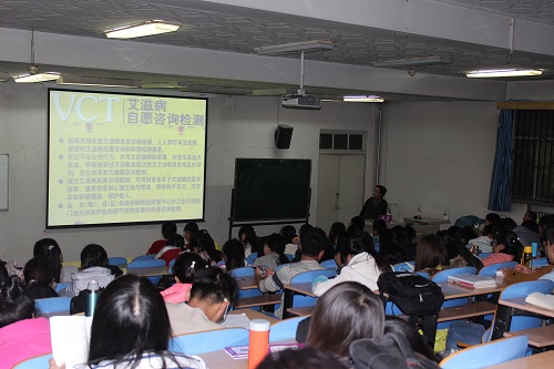讲座现场座无虚席,秩序井然,甘肃玛丽亚妇科医院检验科李莉(副主任医师)主任用通俗易懂得的语言向学生讲了艾滋病的防治要点以及艾滋病的自测方法。专题讲座分为三个主题①你知道艾滋病吗? ②艾滋病是怎么传播的? ③怎样预防艾滋病?讲座现场学生积极回答李主任的问题,并主动提问关于艾滋病的防治盲点,李主任一一做了细致解答。李主任最后强调,艾滋病重在预防,青年是艾滋病的高发人群,一旦有过高危行为,就要进积极参加艾滋病自愿咨询检测(VCT)。自愿咨询检测是免费的,通过自愿咨询和检测,不仅可以尽早发现、及时治疗和预防感染,为受检者特别是感染者,提供心理支持,而且可以促使受检者减少危险行为,预防艾滋病病毒的传播。