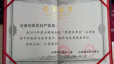 2020年1月10日,在共享集市“社区共同体 庚子心连心”新春送温暖大型集市活动中,玛丽亚医院为5户困难户送上米面油等春节慰问品,以帮助他们过个快乐祥和的春节,同时荣获白银路街道党工委颁发的荣誉证书“志愿服务优秀单位”。