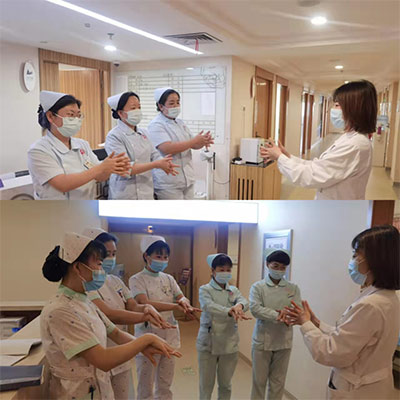 本次培训以手卫生的感染传播事件为切入点,用具体的数据,真实的案例,阐述了手卫生在医务工作中的重要性。培训人员从手卫生、洗手与卫生消毒应遵循的原则、提高医务人员手卫生依从性和正确率、养成良好的手卫生习惯、手消毒的注意事项和手卫生规范等方面进行了详细讲解。期间,参培人员在培训人员的带领下,现场实操“七步洗手法”,取得了良好的效果。