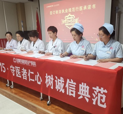 “医疗质量与安全是医疗服务的生命线,诚信行医更是每个医疗工作者最基本的素养。同时,诚信医疗也是医院的立院之本。我们肩负着维护人民健康的使命,面对这么重大的责任,我们一定要进一步规范医疗执业活动,自觉维护消费者的合法权益。在今后的工作中更要倡导诚实守信的行医准则,以实际行动来打造医院的良好形象,让老百姓放心就医。”院长杨春秀在活动仪式的讲话中强调。