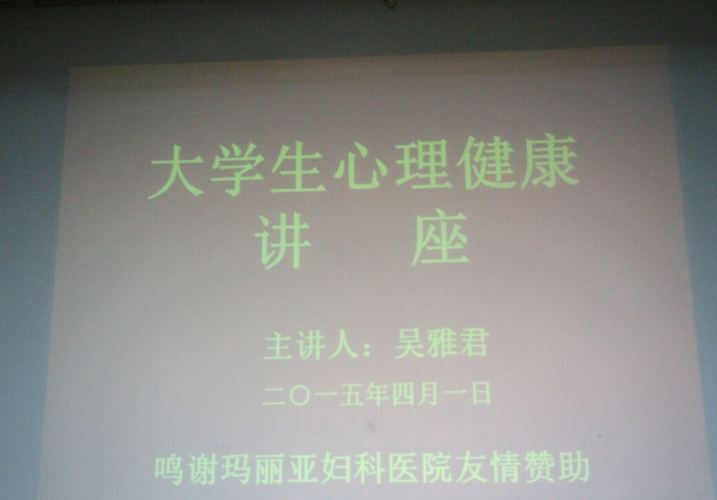 人间四月天,安宁桃花香。4月1日晚上,兰州城市学院学术报告厅,一场别开生面的大学生心理健康讲座在此进行。这是继去年甘肃玛丽亚妇科医院张燕医生为大学生进行生理健康讲座之后,再次联合省内高校、专门针对大学生心理健康问题推出的“健康新女性·美丽大学生”主题巡回讲座,有200多名学生聆听了当天讲座。